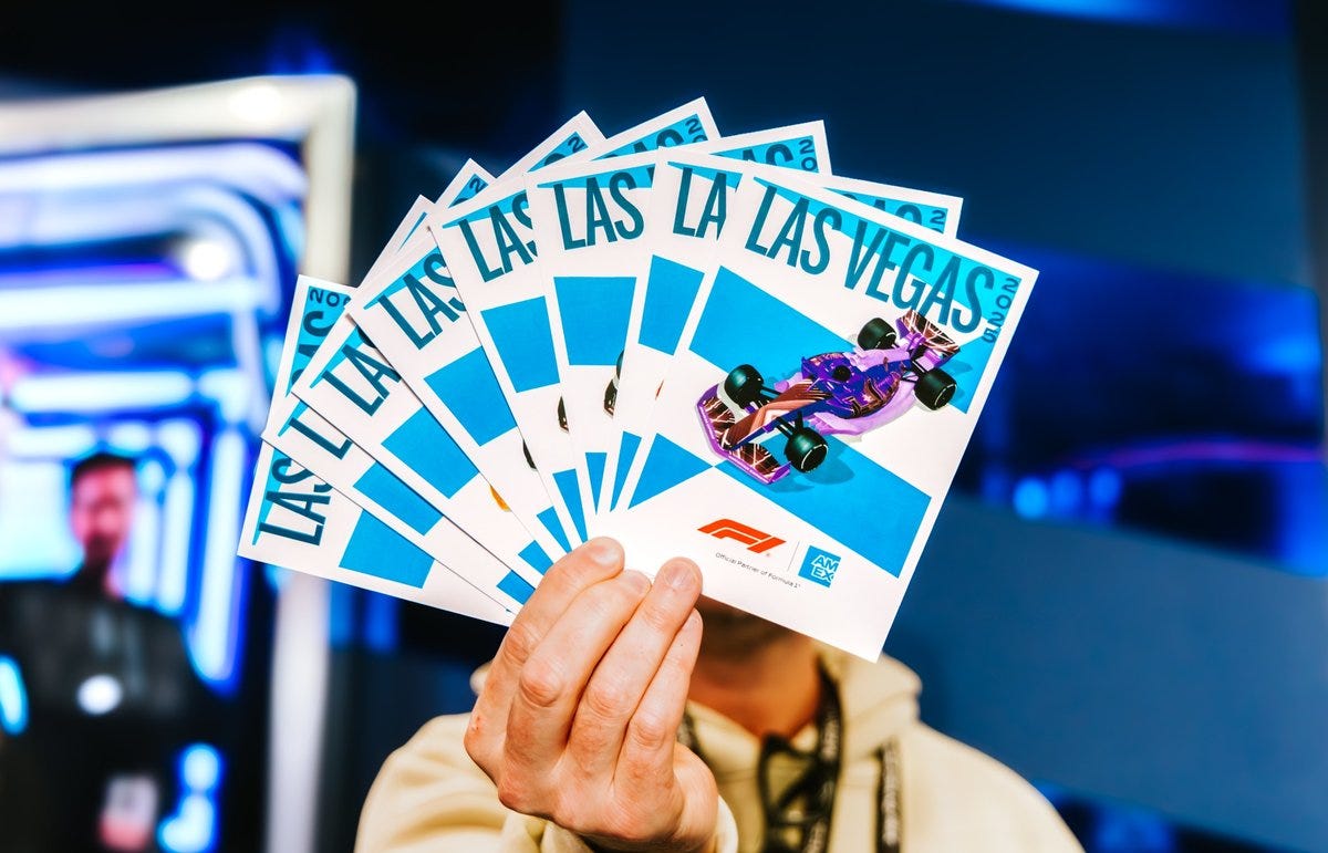 Amex had turned Vegas into a walking billboard — showing up in myriad ways, from on-track moments such as the F1 Academy to more exclusive events such as a low key party for The Only Caviar, Aaron Paul’s caviar business, or an opening night party at Carbone Riviera. And it’s not just Formula 1 getting this treatment from Amex. I noticed the same thing at the US Open over the summer. I wanted to dig deeper into the significant investment that Amex is now making to be omnipresent in sports culture.